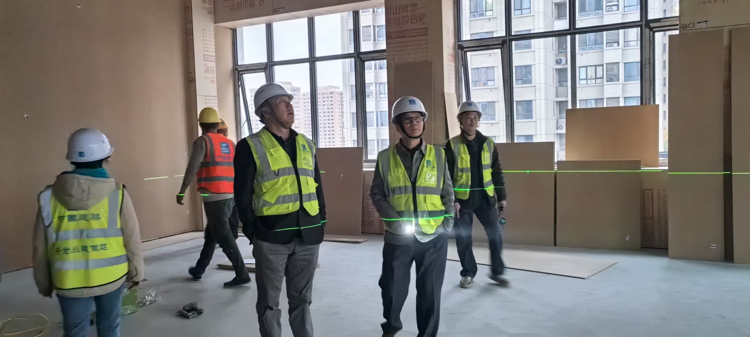 在施工現(xiàn)場,吳紹兵董事長與隨行人員仔細(xì)察看了墻面施工工藝,對醫(yī)療項(xiàng)目特種建材的應(yīng)用效果進(jìn)行了細(xì)致考察。董事長對現(xiàn)場施工規(guī)范,安全措施落實(shí)到位給予了高度評價(jià),充分肯定了馬總在項(xiàng)目管理上的高標(biāo)準(zhǔn)與嚴(yán)要求。