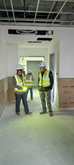 考察過程中,吳紹兵董事長仔細(xì)查看了現(xiàn)場使用的“龍牌礦棉裝飾吸聲板”等建筑材料,逐項(xiàng)核實(shí)其防火等級、環(huán)保性能等關(guān)鍵指標(biāo),并強(qiáng)調(diào)要始終堅(jiān)持質(zhì)量第一、安全至上的原則,確保每一項(xiàng)工序、每一種材料都符合醫(yī)療建筑的特殊要求,將質(zhì)量、安全、進(jìn)度的協(xié)同管理貫穿始終。