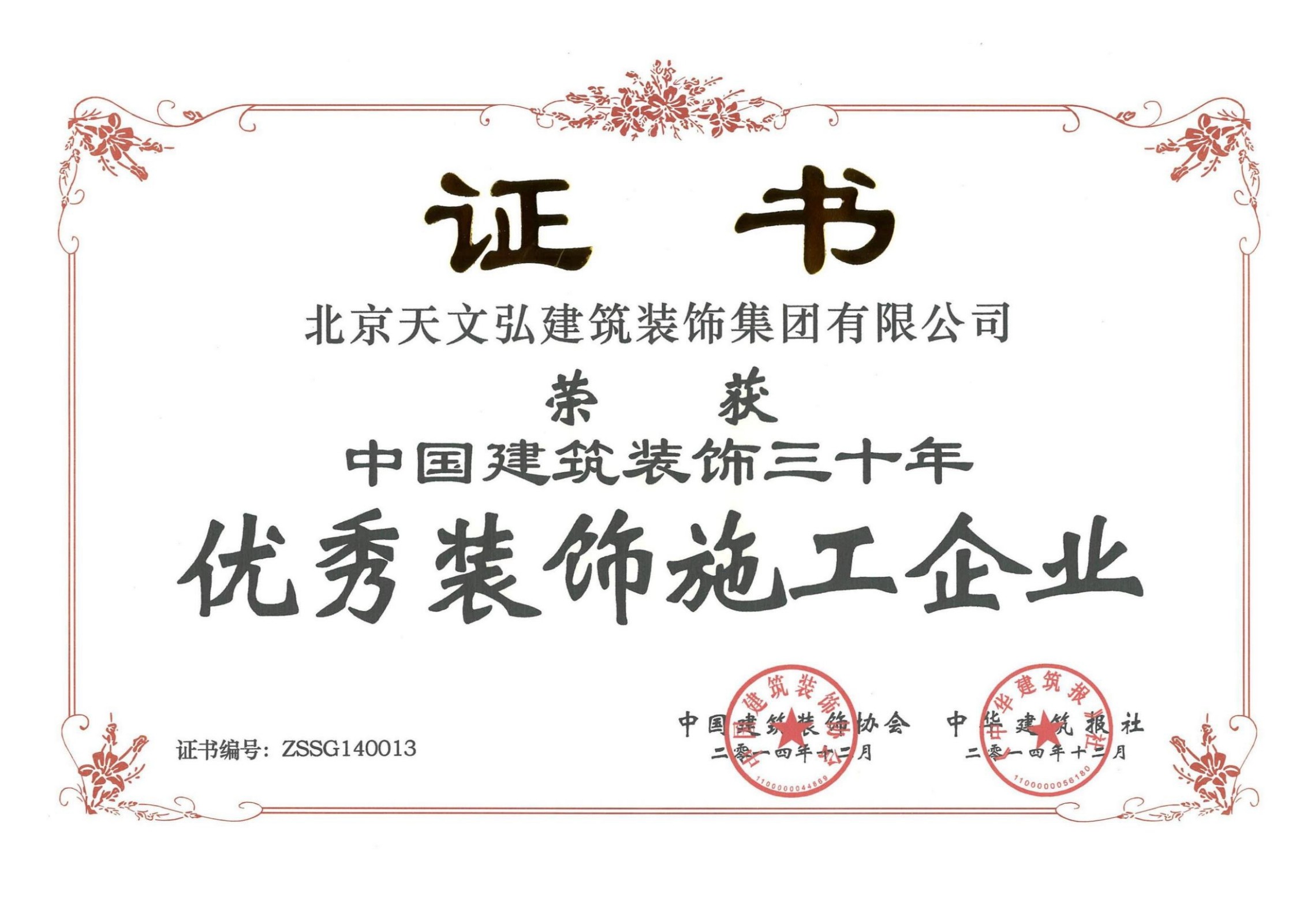 優(yōu)秀裝飾施工企業(yè)
